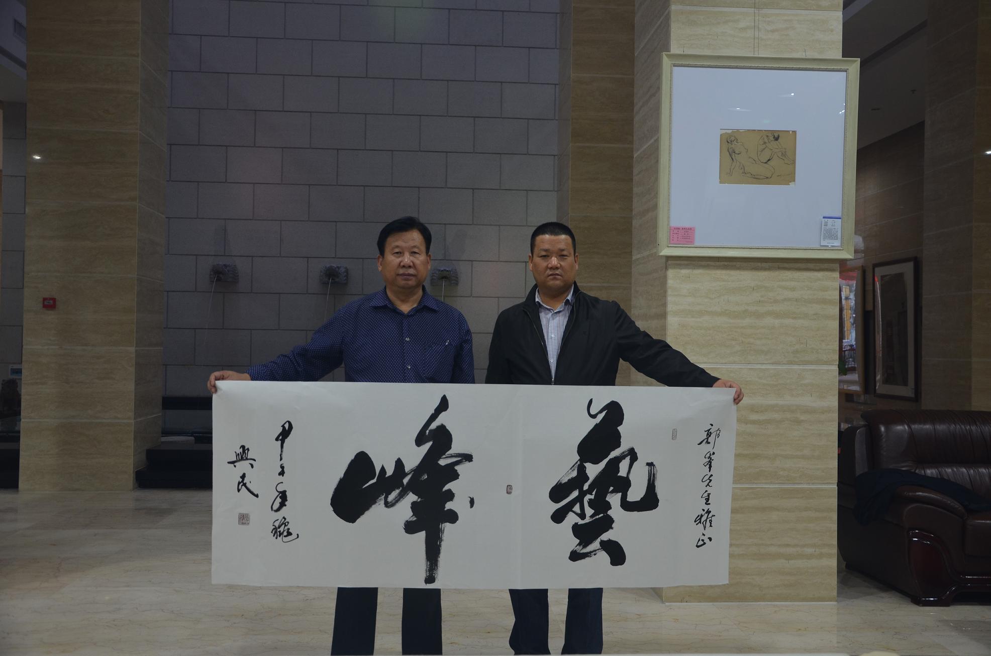 胡兴民主席向陕西秦峰美术馆董事长郭峰先生赠送作品