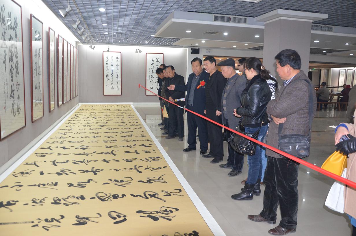 11月16日上午,陕西省榜书协会“同铸民族魂,共圆中国梦”书画巡回展西安站在亮宝楼开幕。陕西省民政厅原副厅长郭青凡,省民政厅张军局长,省榜书协会名誉主席、原渭南市人大常委会主任雷孟斌,省委老干局《金秋》杂志社主编李泉林,省人大书画研究会副会长刘波,省榜书协会名誉主席、陕西书画院副院长雷社艺,省榜书协会副主席张锦田、王砚、刁天寅,省榜书协会副理事长高新民等领导出席开幕式。省榜书协会主席胡兴民介绍了榜书由来以及巡展情况。