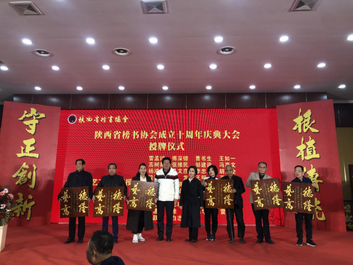 2023年3月30日,是一个鲜花盛开的季节,陕西富平阳光灿烂,春光明媚,明月苑装点的格外喜气,这里锣鼓喧天,礼炮齐明,陕西省榜书协会十周年庆典活动在这里隆重举行,有来自北京、新疆、西藏等全国众多省市的文化大家们齐聚一堂,政协陕西省委原秘书长姚增战、原陕西省新闻出版局副局长任中南、陕西省民政厅原副厅长郭青凡,中国榜书协会荣誉主席彭晓冬、长安书画院院长康智峰等300多位知名人士参加。